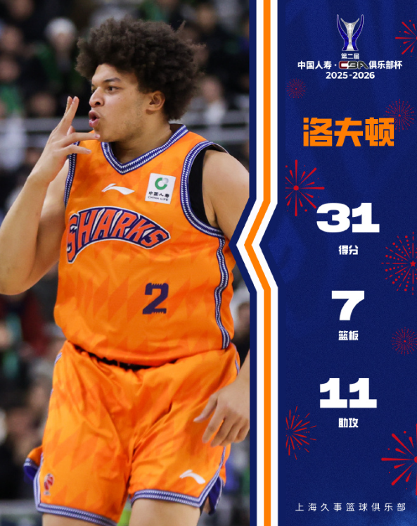 上海男篮卫冕CBA俱乐部杯赛冠军,2024-2025赛季上海男篮是7连胜夺冠,2025-2026赛季上海男篮是六连胜夺冠,跨赛季的13连胜证明了这支球队的硬实力,本赛季上海的班底更胜去年,上海男篮在本赛季是CBA联赛的夺冠热门。抛开俱乐部杯不算,上海男篮本赛季战绩19胜4负跟卫冕冠军广厦一样,上海男篮排在积分榜的第二位。洛夫顿在上赛季就是CBA联赛的最佳外援...